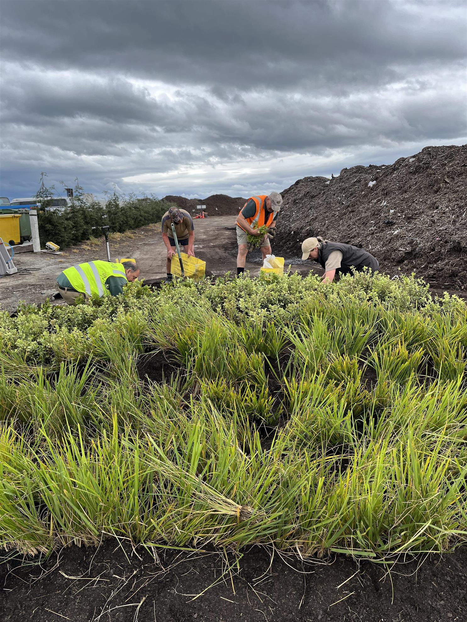 What a great fun afternoon/evening. We had those who carted soil to the table tops, those who dropped all the plants on the table tops too, then there were those (the wholly skilled ones) who, one way or another, inserted the plants and soil in plastic bags together and placed them in wheelbarrows or containers, then there were those who carted them to their final (well, sort of) final resting place and those who made space in trenches to house them until they make their final move next year sometime (guess who’s doing that !!!), not forgetting there was also one who ordered the pizzas and kept them warm.